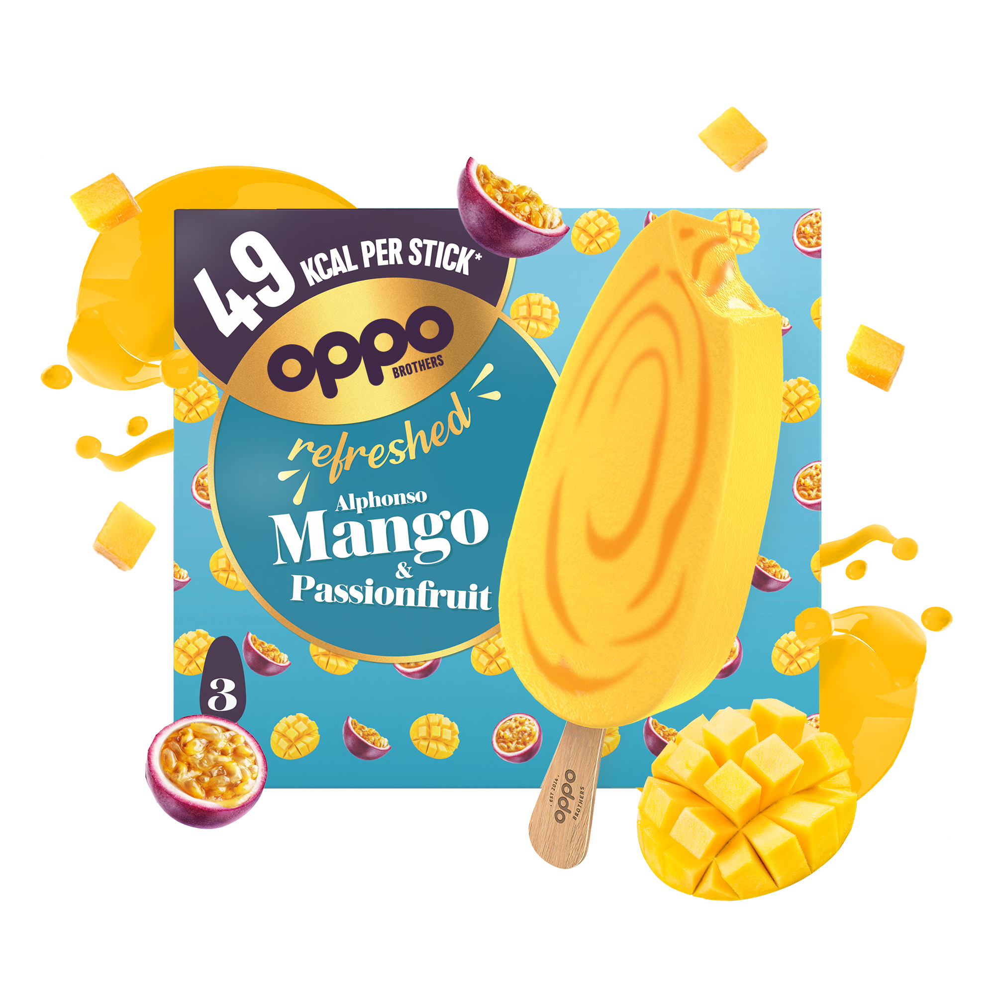 Oppo Brothers 3 Multipack 95ml Refreshed Alphonso Mango & Passionfruit Sorbet Sticks (1x8)